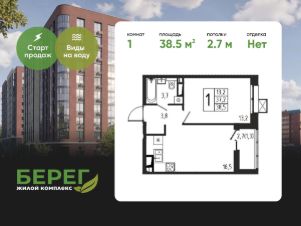 Продаётся 1-комнатная квартира в строящемся доме (Корпус 8 (2 очередь)), общей площадью 38.50 кв.м., на 10 этаже.