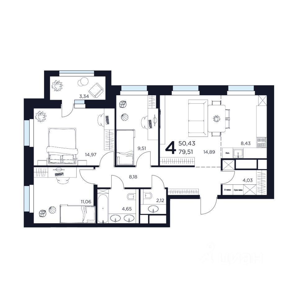 Продаётся 4-комнатная квартира в строящемся доме (Дом 2), срок сдачи: II-кв. 2027, общей площадью 79.51 кв.м., на 11 этаже. Новый жилой комплекс "ВОСТОК II" от застройщика "Новое Время - Химки" расположен по адресу: Московская область, Химки, улица Германа Титова, 2