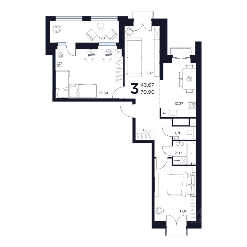 Продаётся 3-комнатная квартира в строящемся доме (Дом 2), срок сдачи: II-кв. 2027, общей площадью 70.9 кв.м., на 8 этаже. Новый жилой комплекс "ВОСТОК II" от застройщика "Новое Время - Химки" расположен по адресу: Московская область, Химки, улица Германа Титова, 2