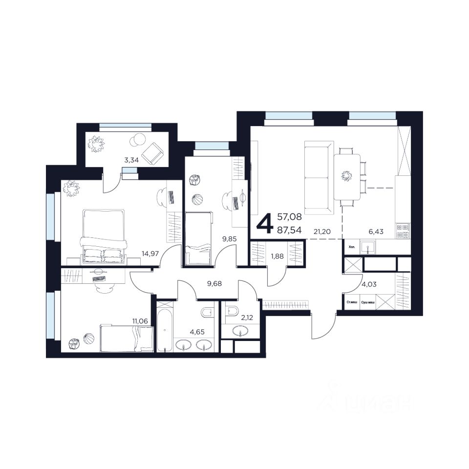 Продаётся 4-комнатная квартира в строящемся доме (Дом 2), срок сдачи: II-кв. 2027, общей площадью 87.54 кв.м., на 6 этаже. Новый жилой комплекс "ВОСТОК II" от застройщика "Новое Время - Химки" расположен по адресу: Московская область, Химки, улица Германа Титова, 2
