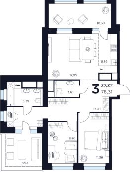 Продаётся 3-комнатная квартира в строящемся доме (Дом 2), срок сдачи: II-кв. 2027, общей площадью 76.31 кв.м., на 14 этаже. Новый жилой комплекс "ВОСТОК II" от застройщика "Новое Время - Химки" расположен по адресу: Московская область, Химки, улица Германа Титова, 2