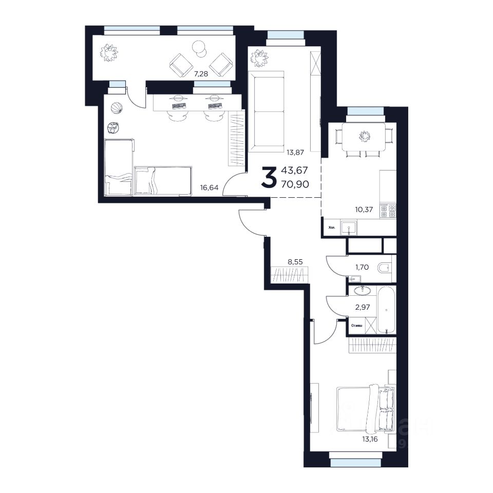 Продаётся 3-комнатная квартира в строящемся доме (Дом 2), срок сдачи: II-кв. 2027, общей площадью 70.9 кв.м., на 3 этаже. Новый жилой комплекс "ВОСТОК II" от застройщика "Новое Время - Химки" расположен по адресу: Московская область, Химки, улица Германа Титова, 2