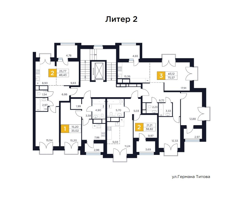Продаётся 2-комнатная квартира в строящемся доме (Дом 2), срок сдачи: II-кв. 2027, общей площадью 38.82 кв.м., на 8 этаже. Новый жилой комплекс "ВОСТОК II" от застройщика "Новое Время - Химки" расположен по адресу: Московская область, Химки, улица Германа Титова, 2