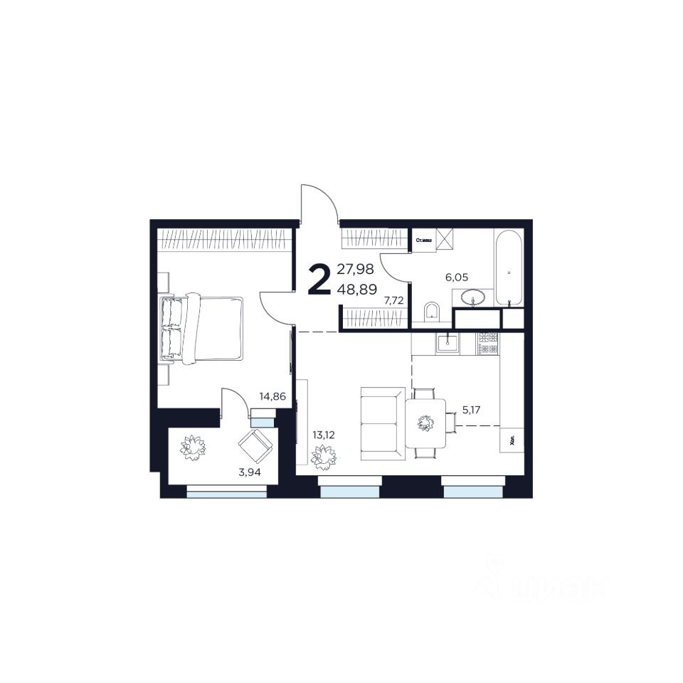 Продаётся 2-комнатная квартира в строящемся доме (Дом 2), срок сдачи: II-кв. 2027, общей площадью 48.89 кв.м., на 15 этаже. Новый жилой комплекс "ВОСТОК II" от застройщика "Новое Время - Химки" расположен по адресу: Московская область, Химки, улица Германа Титова, 2