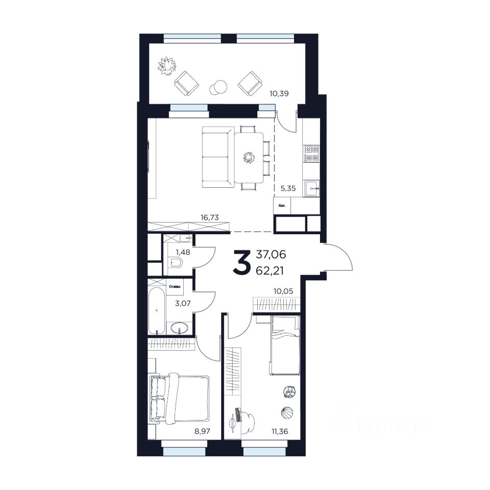 Продаётся 3-комнатная квартира в строящемся доме (Дом 2), срок сдачи: II-кв. 2027, общей площадью 62.21 кв.м., на 10 этаже. Новый жилой комплекс "ВОСТОК II" от застройщика "Новое Время - Химки" расположен по адресу: Московская область, Химки, улица Германа Титова, 2