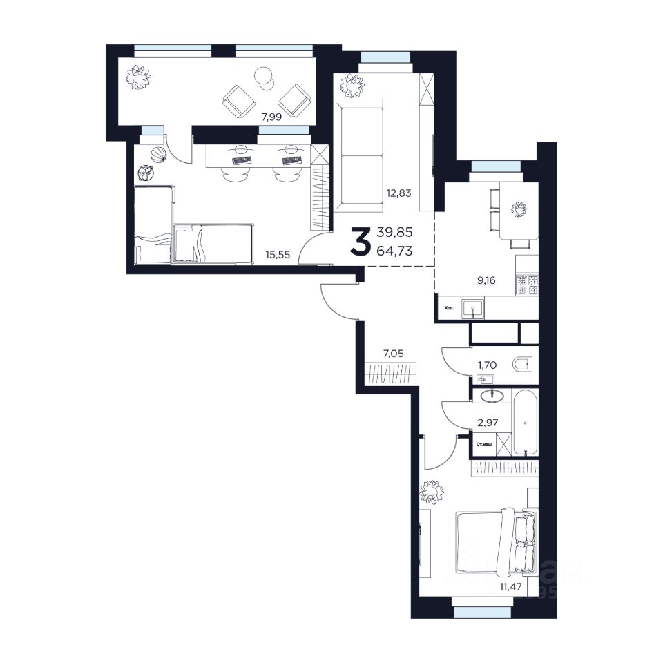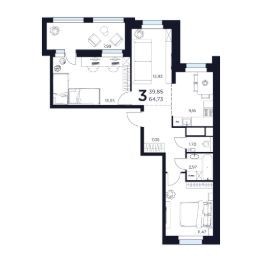 Продаётся 3-комнатная квартира в строящемся доме (Дом 2), срок сдачи: II-кв. 2027, общей площадью 64.73 кв.м., на 9 этаже. Новый жилой комплекс "ВОСТОК II" от застройщика "Новое Время - Химки" расположен по адресу: Московская область, Химки, улица Германа Титова, 2