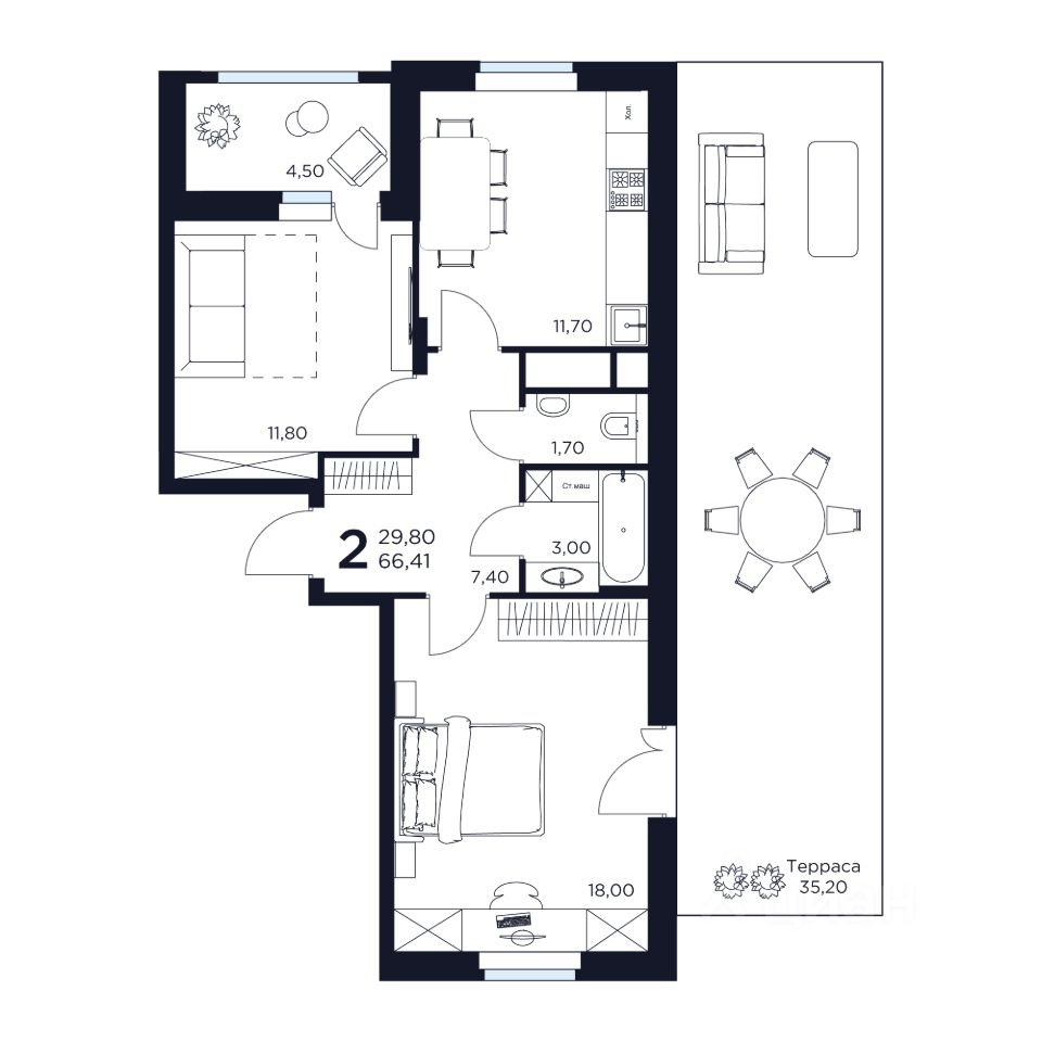 Продаётся 2-комнатная квартира в строящемся доме (Дом 7), срок сдачи: III-кв. 2028, общей площадью 66.41 кв.м., на 3 этаже. Новый жилой комплекс "ВОСТОК II" от застройщика "Новое Время - Химки" расположен по адресу: Московская область, Химки, улица Германа Титова, 2