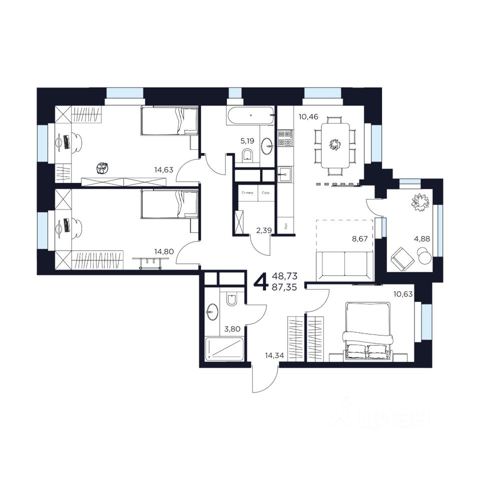 Продаётся 4-комнатная квартира в строящемся доме (Дом 7), срок сдачи: III-кв. 2028, общей площадью 87.35 кв.м., на 5 этаже. Новый жилой комплекс "ВОСТОК II" от застройщика "Новое Время - Химки" расположен по адресу: Московская область, Химки, улица Германа Титова, 2