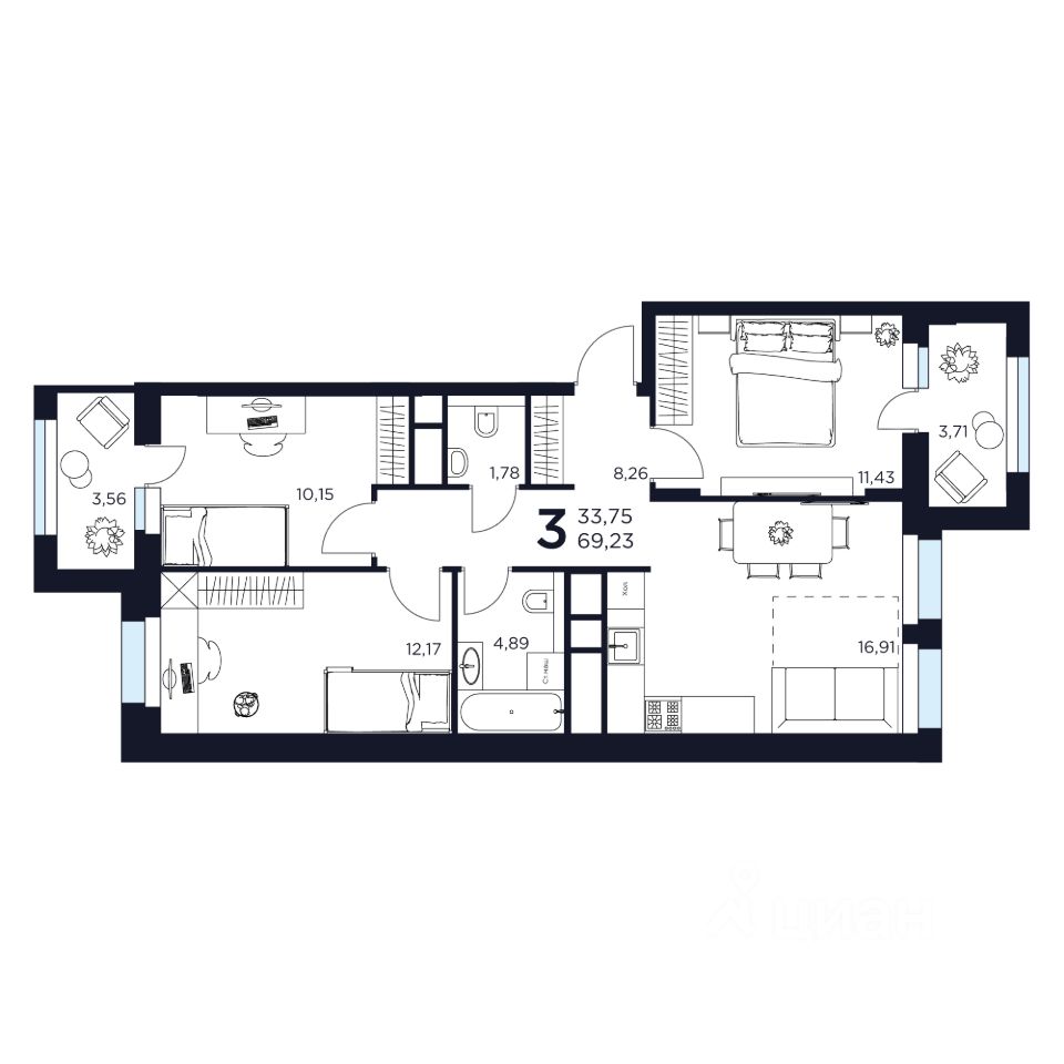 Продаётся 3-комнатная квартира в строящемся доме (Дом 7), срок сдачи: III-кв. 2028, общей площадью 69.23 кв.м., на 4 этаже. Новый жилой комплекс "ВОСТОК II" от застройщика "Новое Время - Химки" расположен по адресу: Московская область, Химки, улица Германа Титова, 2