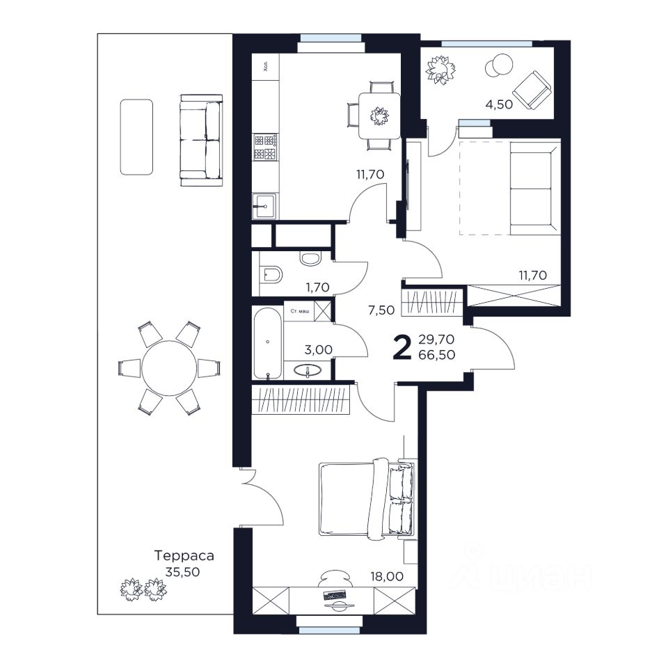 Продаётся 2-комнатная квартира в строящемся доме (Дом 7), срок сдачи: III-кв. 2028, общей площадью 66.5 кв.м., на 3 этаже. Новый жилой комплекс "ВОСТОК II" от застройщика "Новое Время - Химки" расположен по адресу: Московская область, Химки, улица Германа Титова, 2