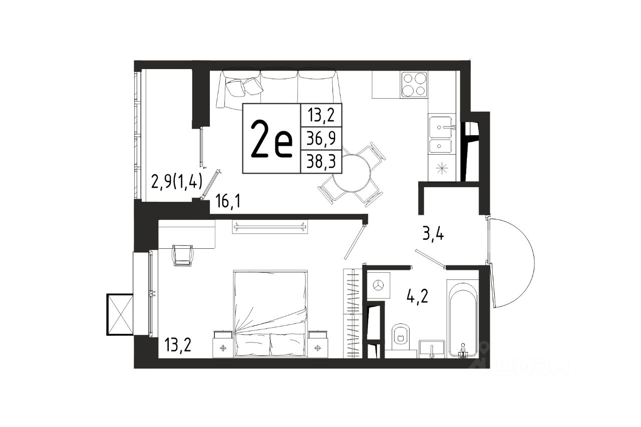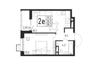 Продаётся 1-комнатная квартира в строящемся доме (Корпус 4 (2 очередь)), общей площадью 38.30 кв.м., на 6 этаже.