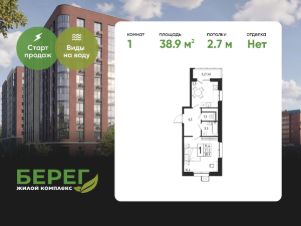 Продаётся 1-комнатная квартира в строящемся доме (Корпус 8 (2 очередь)), общей площадью 38.90 кв.м., на 4 этаже.