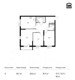 Общая площадь по документам: 80,9 кв.м, с учетом 1 балкона 81,7