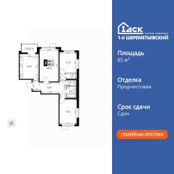 Продаётся 3-к квартира номер 379 общей площадью 85.4 кв.м. на 5-м этаже 14 этажного здания. Отделка Whitebox. Цена с учётом скидки.