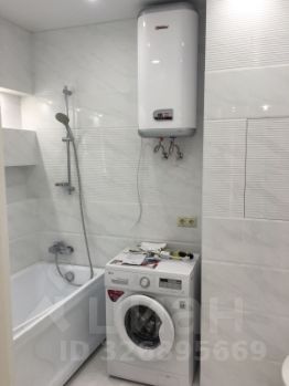 Просторный санузел с нагревателем воды на время, когда летом отключают горячую воду.
