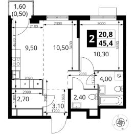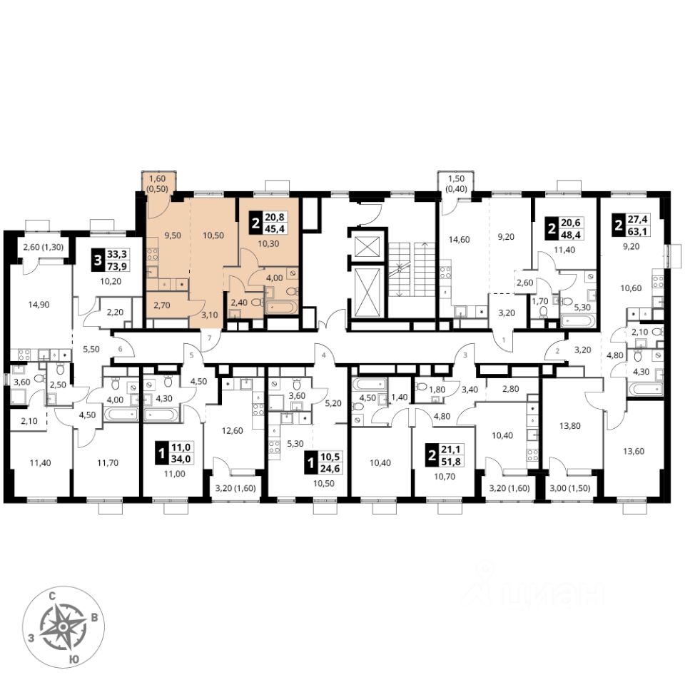 Продаётся 2-к квартира номер 83 общей площадью 45.4 кв.м. на 12-м этаже 17 этажного здания. Без отделки.