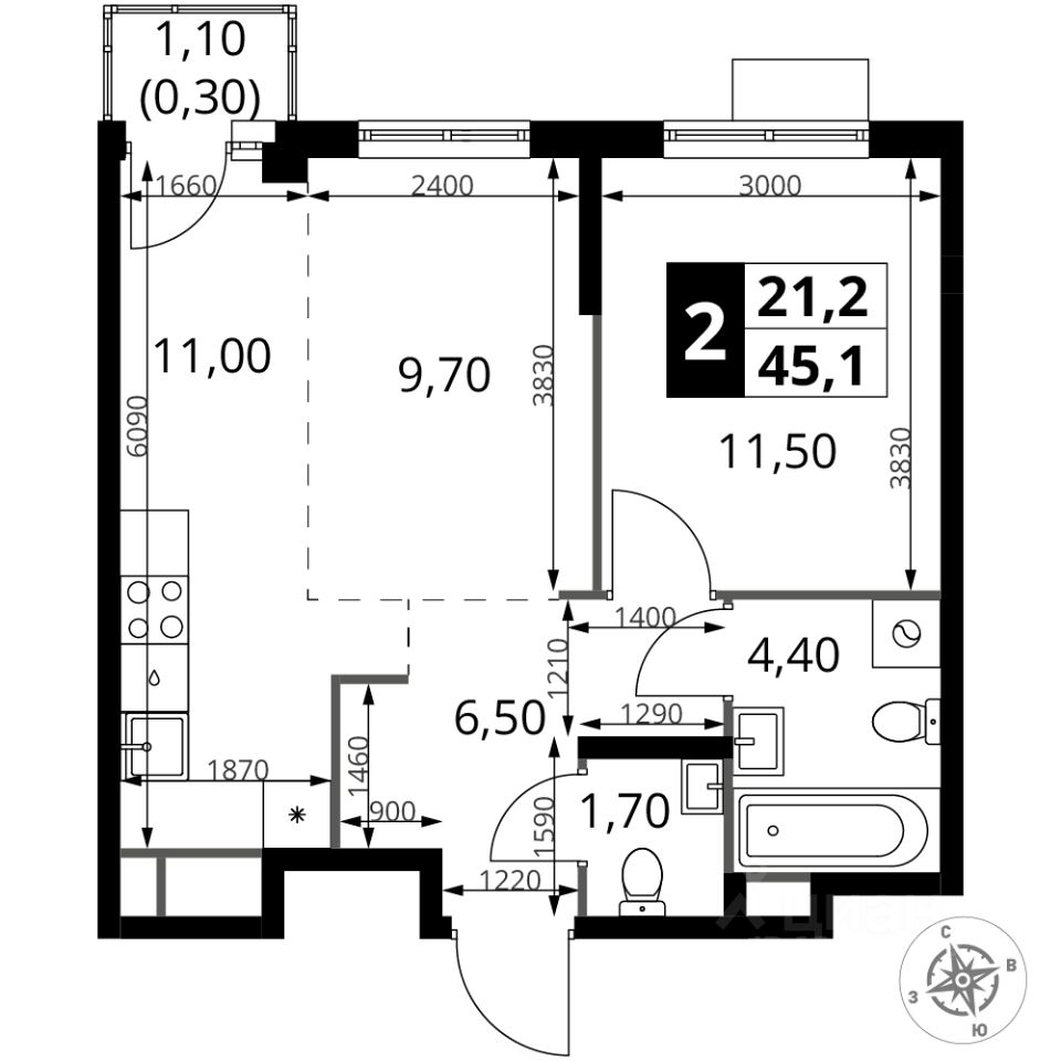- Евроформат - просторное и удобное жилье с отличной планировкой.