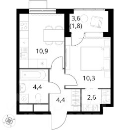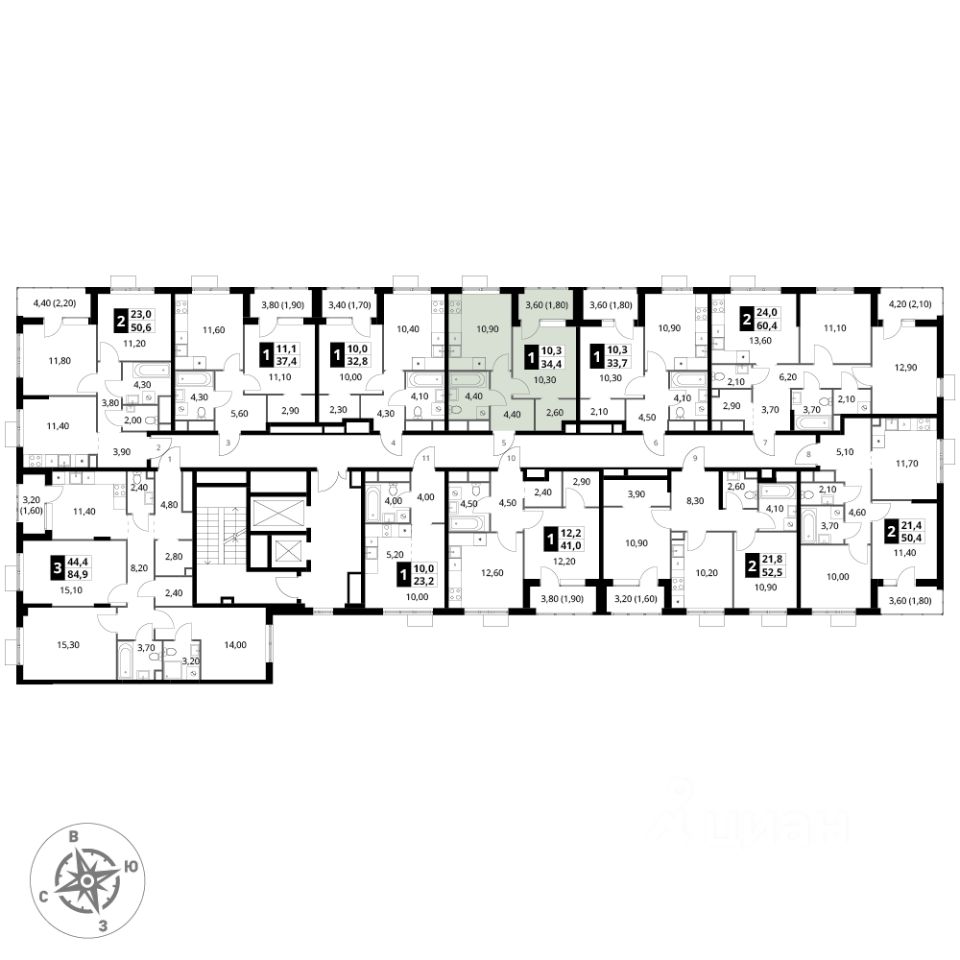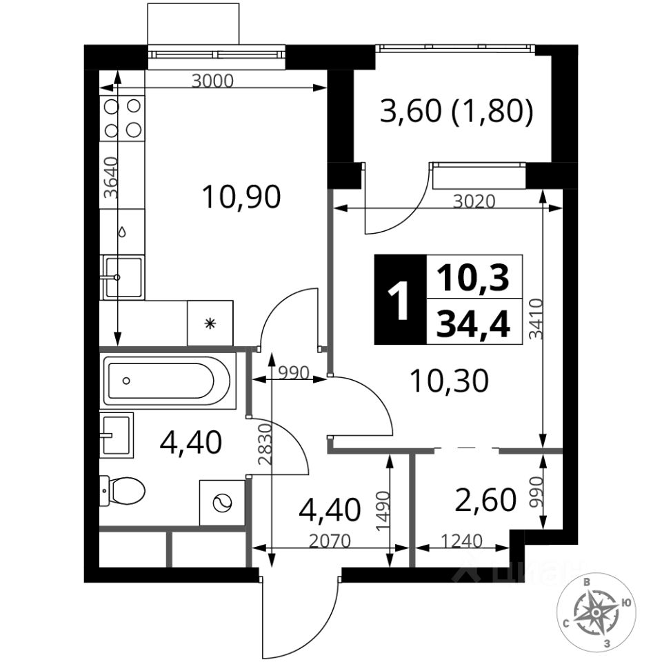 Продаётся 1-к квартира номер 187 общей площадью 34.4 кв.м. на 4-м этаже 16 этажного здания. Без отделки.