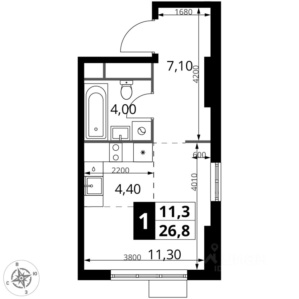 Продаётся квартира-студия номер 289 общей площадью 26.8 кв.м. на 16-м этаже 16 этажного здания. Без отделки.