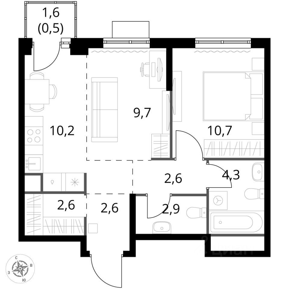 10,2 м²