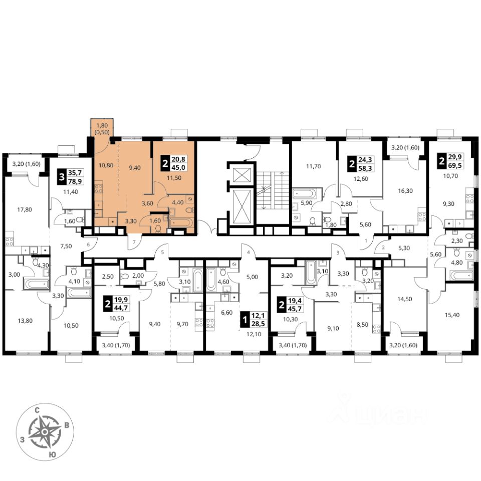 Общая площадь45 м²