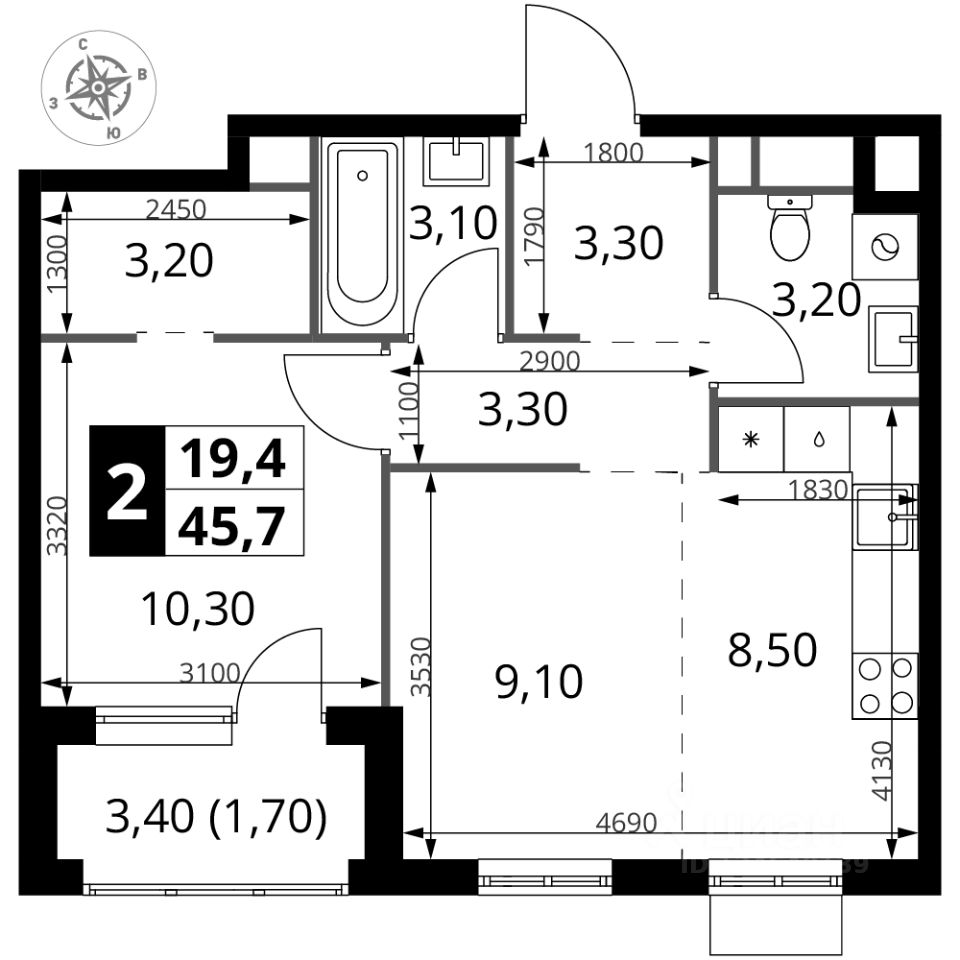 Продаётся 2-к квартира номер 393 общей площадью 45.7 кв.м. на 3-м этаже 7 этажного здания. Чистовая отделка.