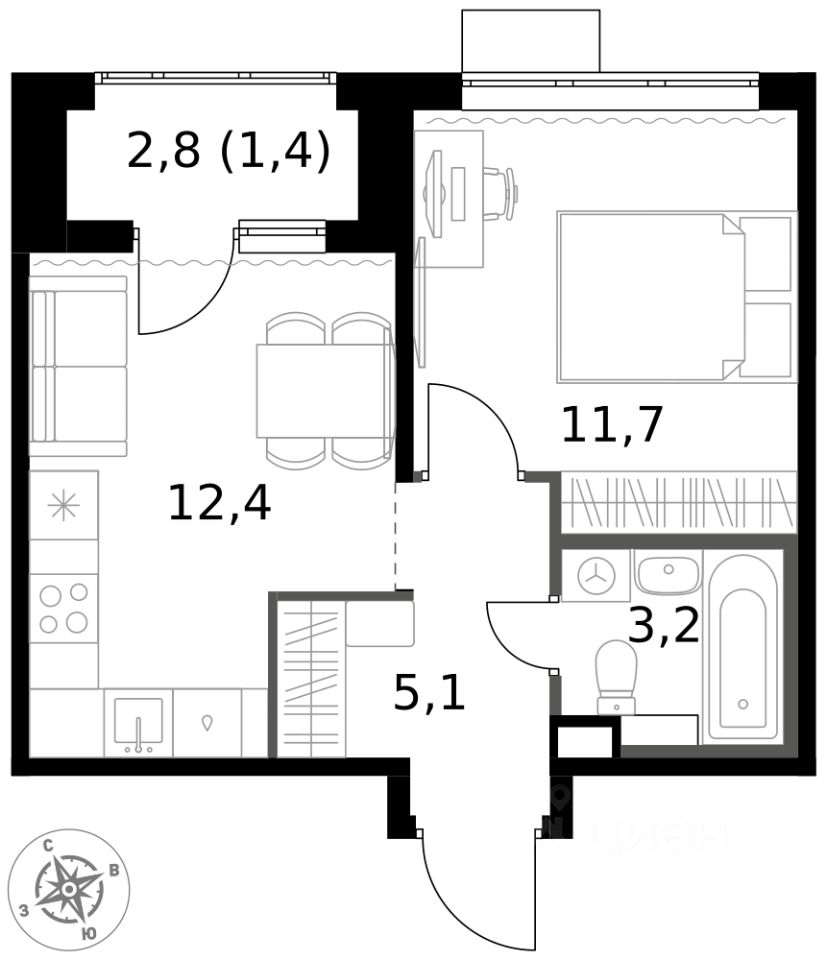 Продаётся 1-к квартира номер 142 общей площадью 33.8 кв.м. на 12-м этаже 17 этажного здания. Отделка Whitebox. Цена с учётом скидки.