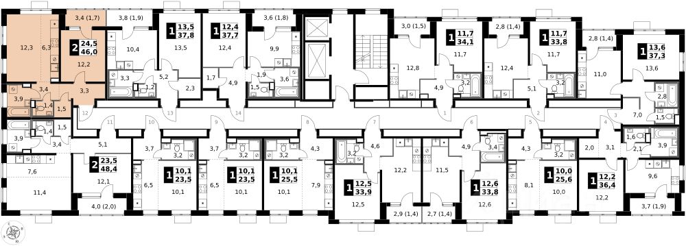 Продаётся 2-к квартира номер 222 общей площадью 46 кв.м. на 17-м этаже 17 этажного здания. Отделка Whitebox. Цена с учётом скидки.