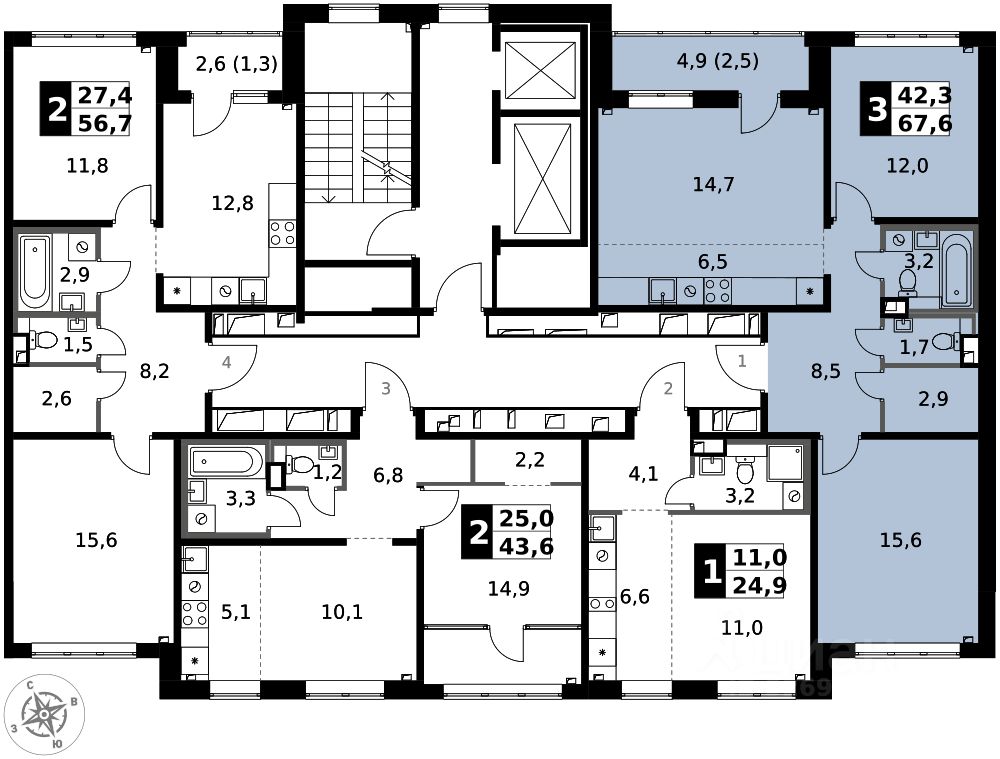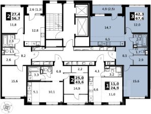 Продаётся 3-к квартира номер 225 общей площадью 67.6 кв.м. на 2-м этаже 9 этажного здания. Отделка Whitebox. Цена с учётом скидки.