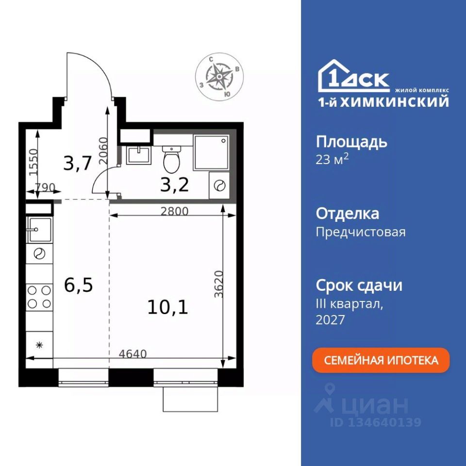 Продаётся квартира-студия номер 191 общей площадью 23.5 кв.м. на 15-м этаже 17 этажного здания. Отделка Whitebox. Цена с учётом скидки.