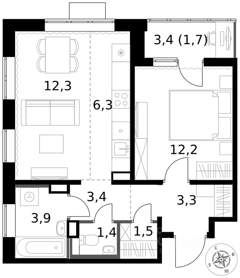 - Раздельный санузел - больше удобства для всех членов семьи.