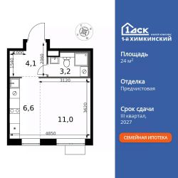 Продаётся квартира-студия номер 250 общей площадью 24.9 кв.м. на 8-м этаже 9 этажного здания. Отделка Whitebox. Цена с учётом скидки.