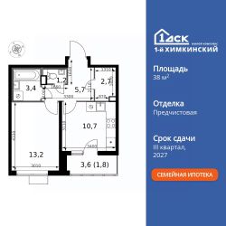 Продаётся 1-к квартира номер 529 общей площадью 38.7 кв.м. на 5-м этаже 13 этажного здания. Отделка Whitebox. Цена с учётом скидки.