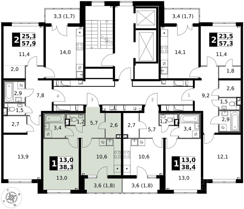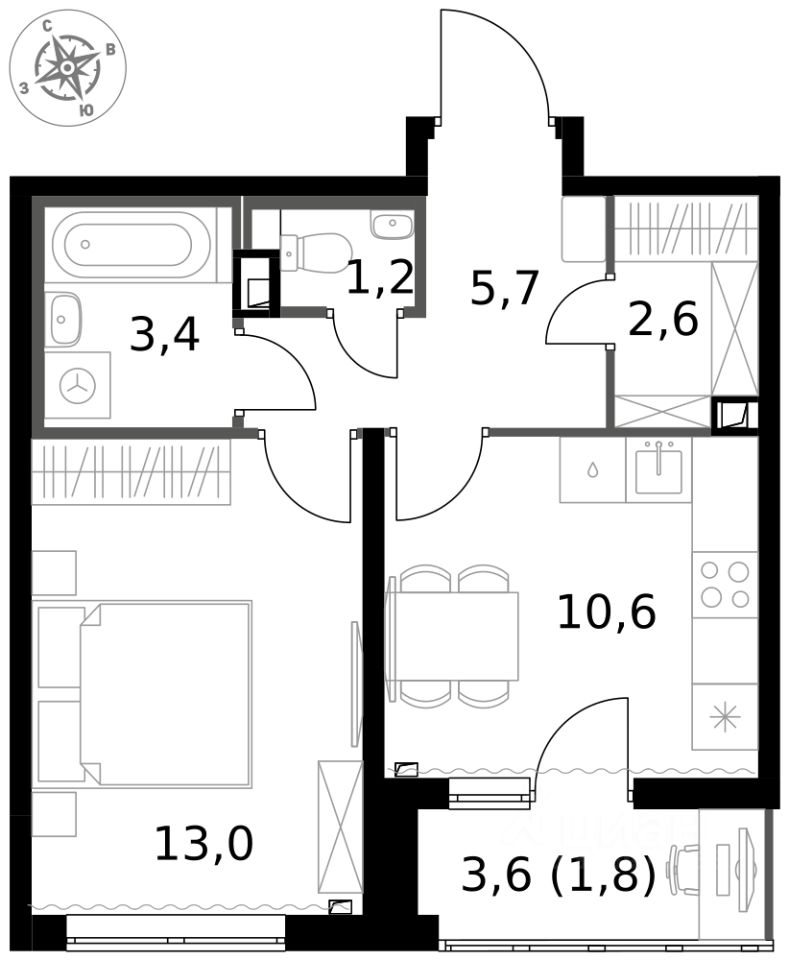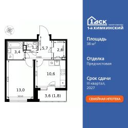 Продаётся 1-к квартира номер 517 общей площадью 38.3 кв.м. на 2-м этаже 13 этажного здания. Отделка Whitebox. Цена с учётом скидки.