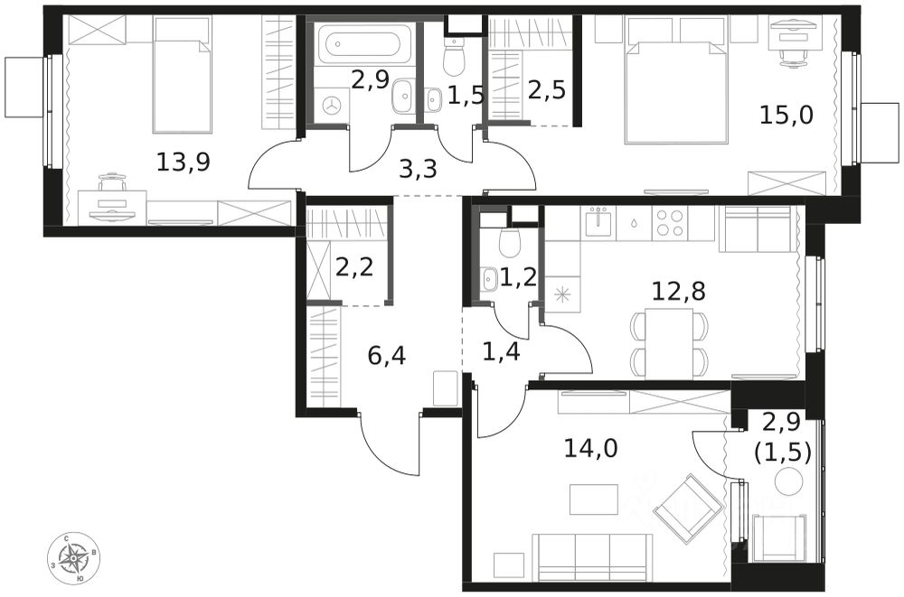 - Раздельный санузел - больше удобства для всех членов семьи.