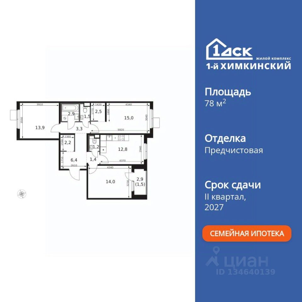 Продаётся 3-к квартира номер 328 общей площадью 78.6 кв.м. на 4-м этаже 8 этажного здания. Отделка Whitebox.