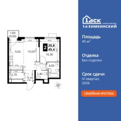 Продаётся 2-к квартира номер 83 общей площадью 45.4 кв.м. на 12-м этаже 17 этажного здания. Без отделки.