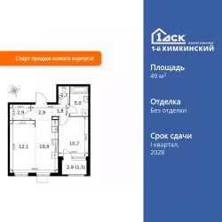 Продаётся 2-к квартира номер 41 общей площадью 49.5 кв.м. на 4-м этаже 10 этажного здания. Без отделки. Цена с учётом скидки.