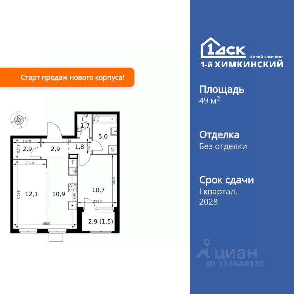 Продаётся 2-к квартира номер 107 общей площадью 49.5 кв.м. на 10-м этаже 10 этажного здания. Без отделки. Цена с учётом скидки.