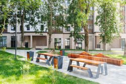 Дворы без машин. Безопасные детские площадки. Вдоль корпусов организованы зоны тихого отдыха: детский гомон с далеких каруселей и горок не достигнет окон жителей. В кварта