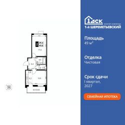 Продаётся 2-к квартира номер 1027 общей площадью 49.8 кв.м. на 16-м этаже 16 этажного здания. Чистовая отделка. Цена с учётом скидки.