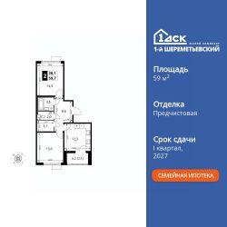 Продаётся 2-к квартира номер 310 общей площадью 59.7 кв.м. на 12-м этаже 16 этажного здания. Предчистовая отделка. Цена с учётом скидки.