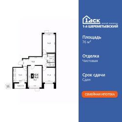 Продаётся 3-к квартира номер 32 общей площадью 76.3 кв.м. на 9-м этаже 17 этажного здания. Чистовая отделка. Цена с учётом скидки.