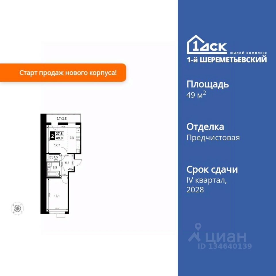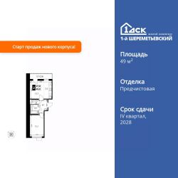 Продаётся 2-к квартира номер 708 общей площадью 49 кв.м. на 7-м этаже 13 этажного здания. Отделка Whitebox. Цена с учётом скидки.
