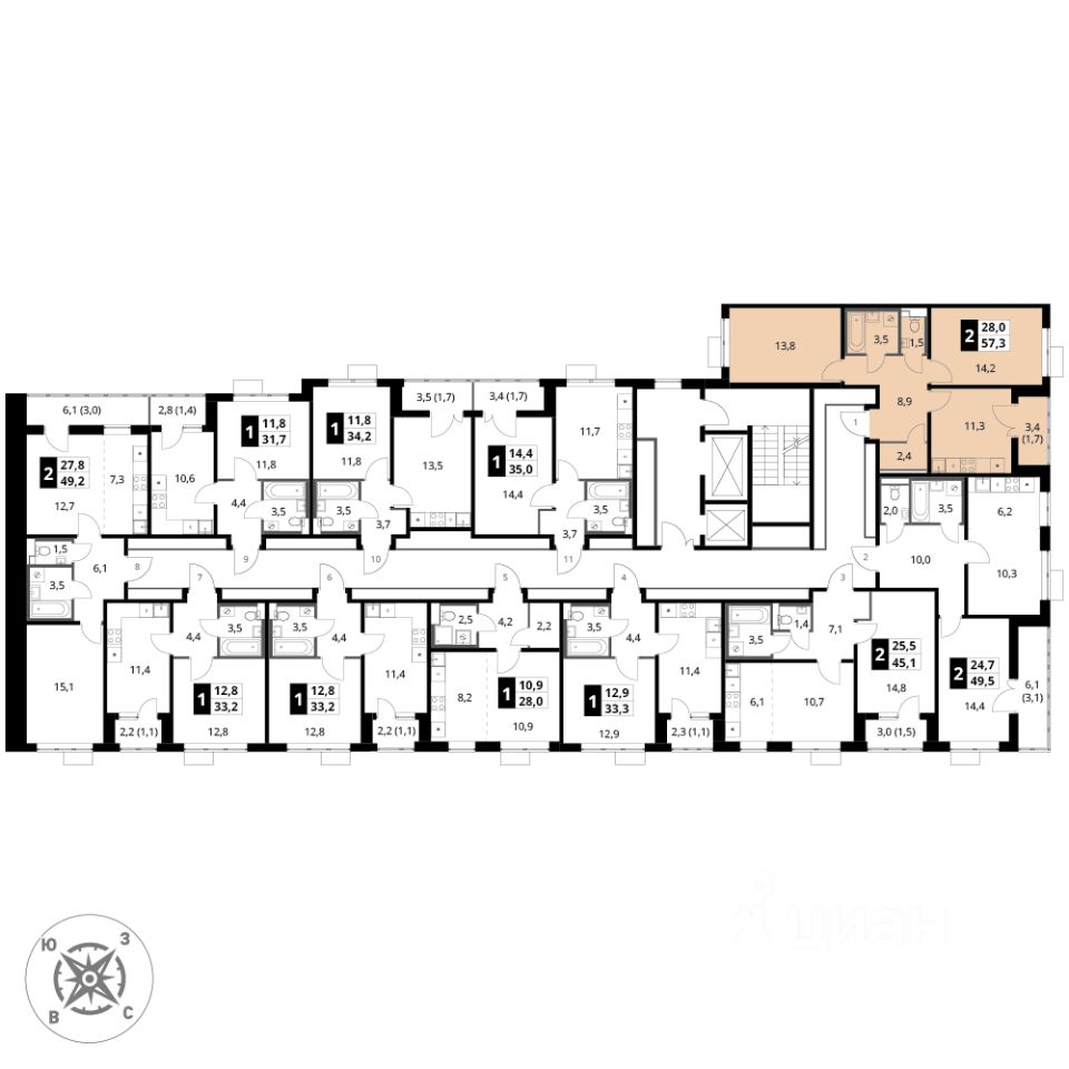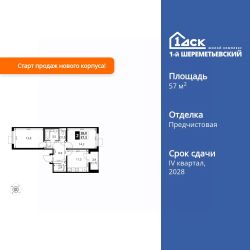 Продаётся 2-к квартира номер 712 общей площадью 57.3 кв.м. на 8-м этаже 13 этажного здания. Отделка Whitebox. Цена с учётом скидки.