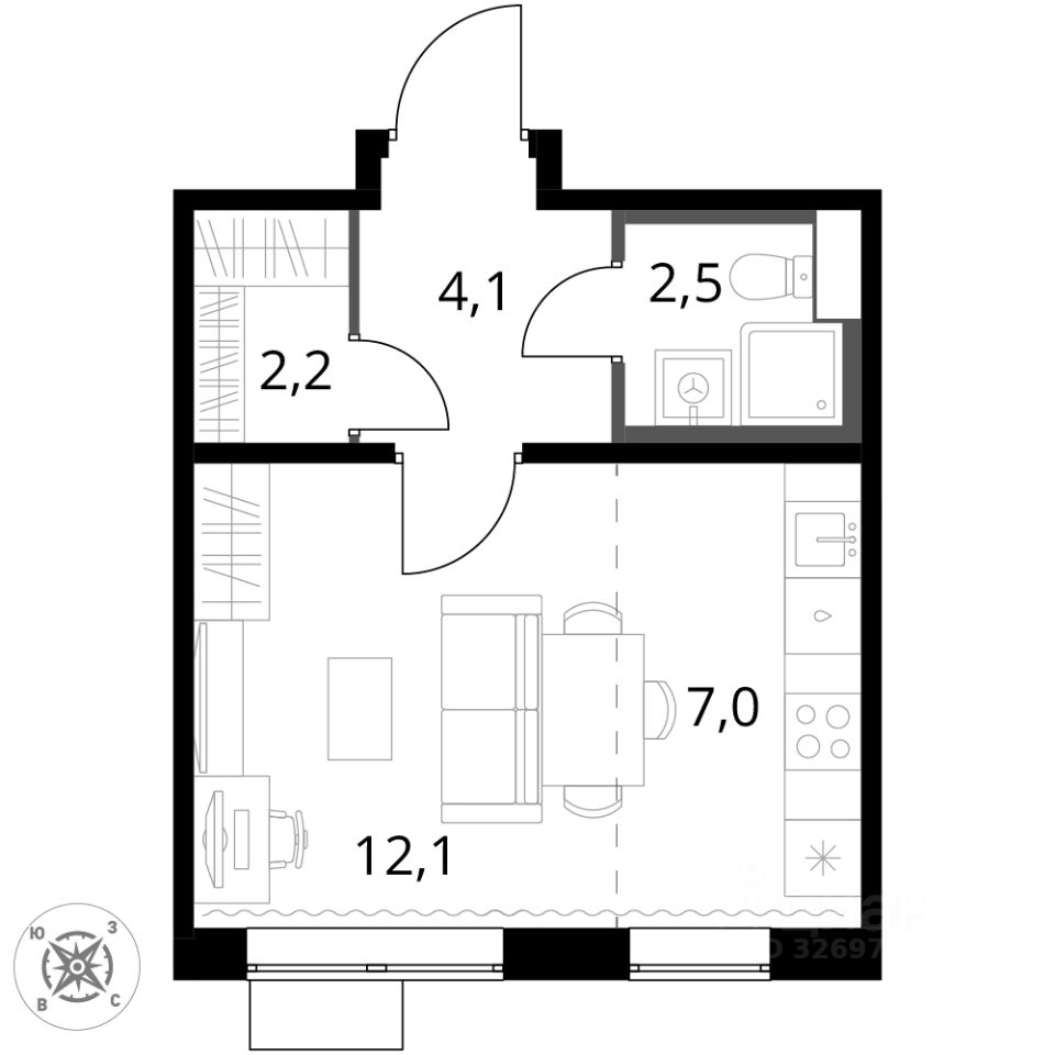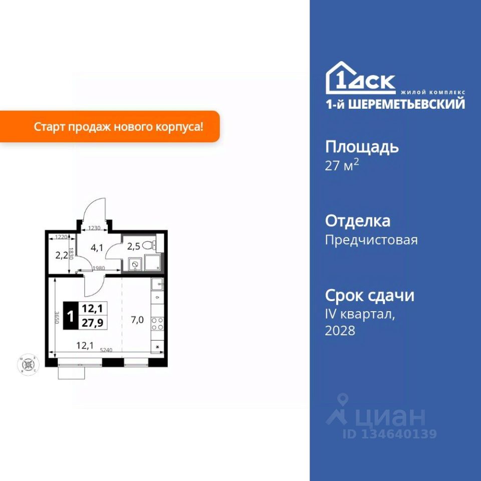 Продаётся квартира-студия номер 806 общей площадью 27.9 кв.м. на 4-м этаже 16 этажного здания. Предчистовая отделка. Цена с учётом скидки.
