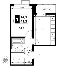 Продаётся 1-к квартира номер 871 общей площадью 41.3 кв.м. на 9-м этаже 16 этажного здания. Отделка Whitebox. Цена с учётом скидки.