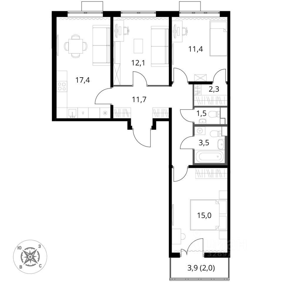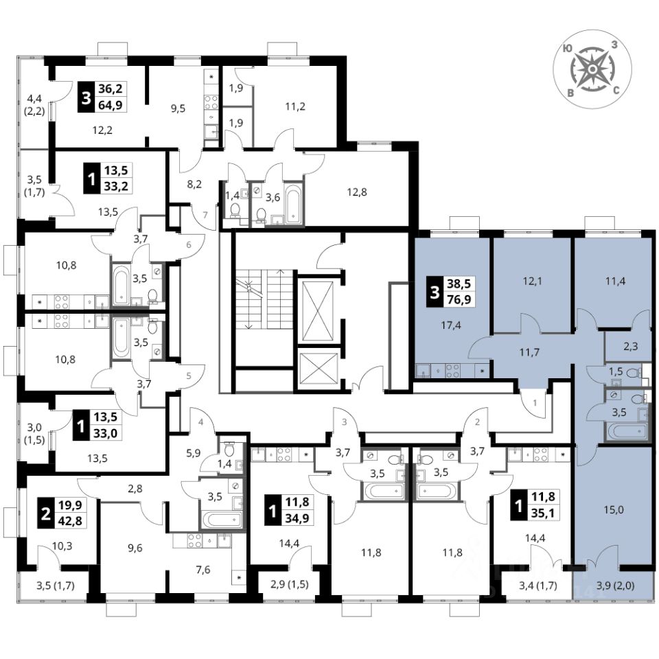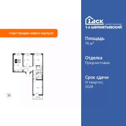 Продаётся 3-к квартира номер 1056 общей площадью 76.9 кв.м. на 16-м этаже 16 этажного здания. Отделка Whitebox. Цена с учётом скидки.