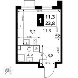 Продаётся квартира-студия номер 1341 общей площадью 23.8 кв.м. на 15-м этаже 17 этажного здания. Без отделки.