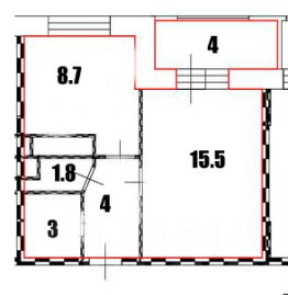 - Общая площадь квартиры с лоджией составляет 35 кв. м, кухней 8.7 кв. м.